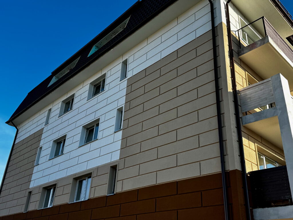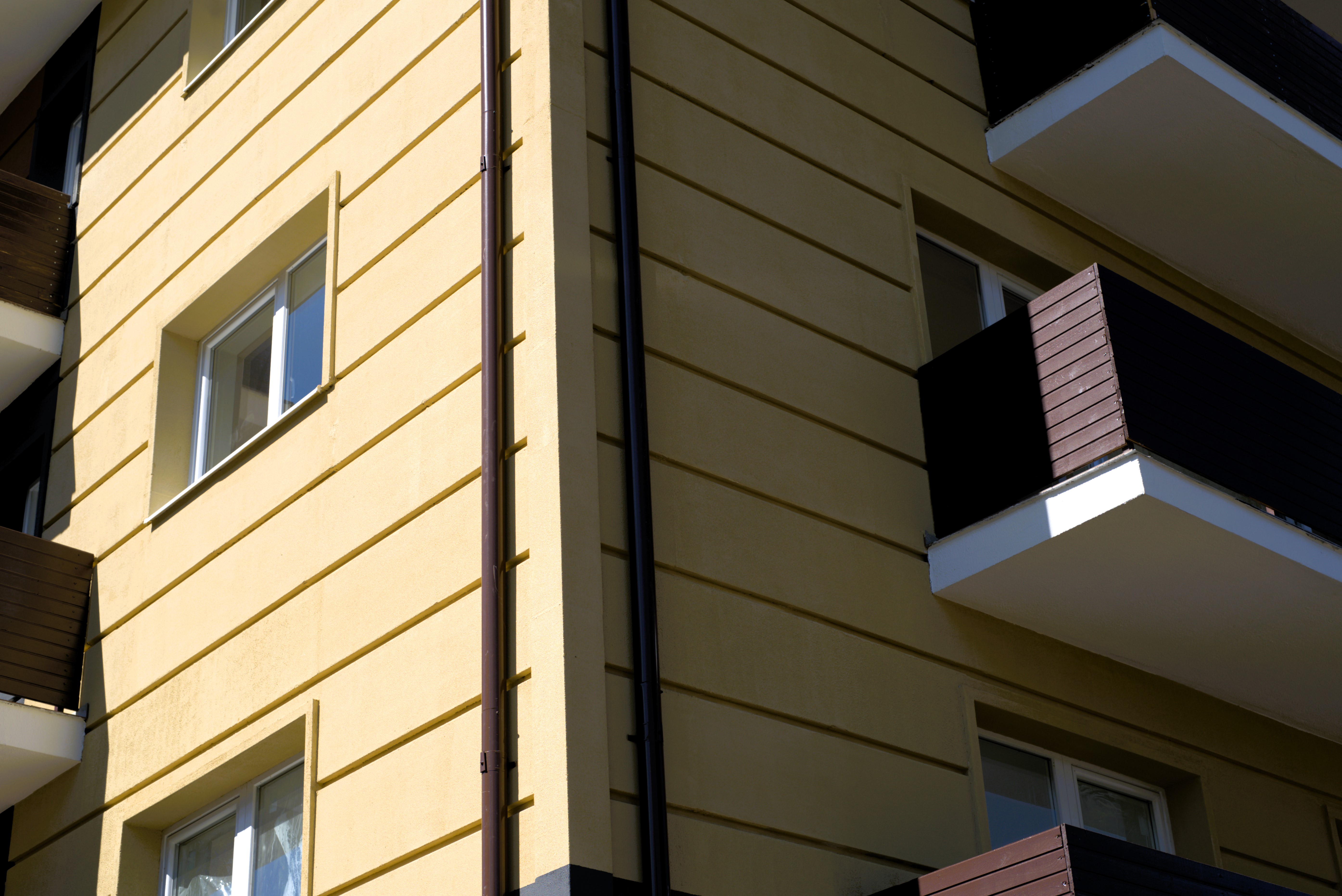 Termoizolație de fațade prefabricate din polistiren cu densitate de min. EPS 80 cu îmbinare nut și feder.Pe suprafața polistirenului se aplică un strat de protecție din compoziții chimice (din acriluri, nisip de cuarț, praf de marmură, agent plastifiant, agent antispumant).