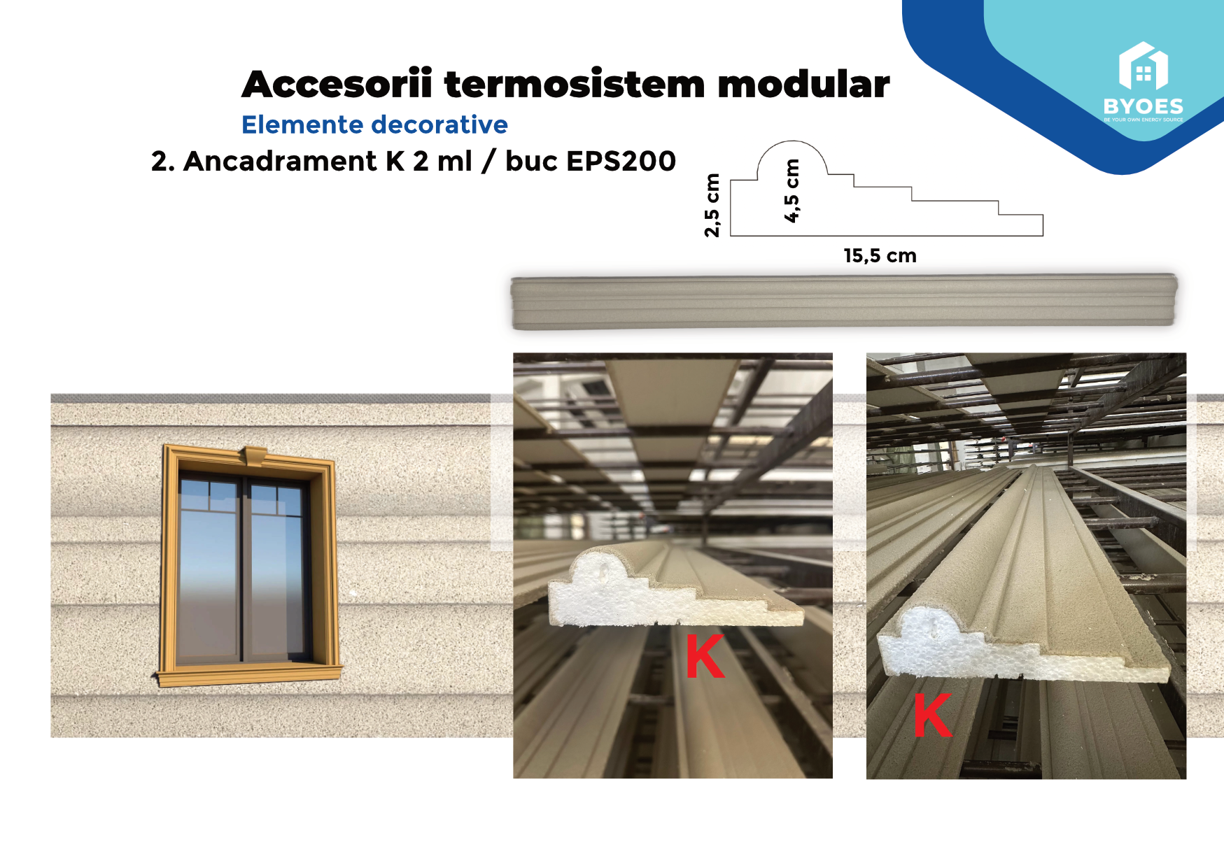 Ușurință în montaj: Ancadramentele din polistiren sunt ușoare, ceea ce le face foarte ușor de montat și manevrat. De asemenea, pot fi tăiate cu ușurință pentru a se potrivi dimensiunilor exacte ale deschiderii.