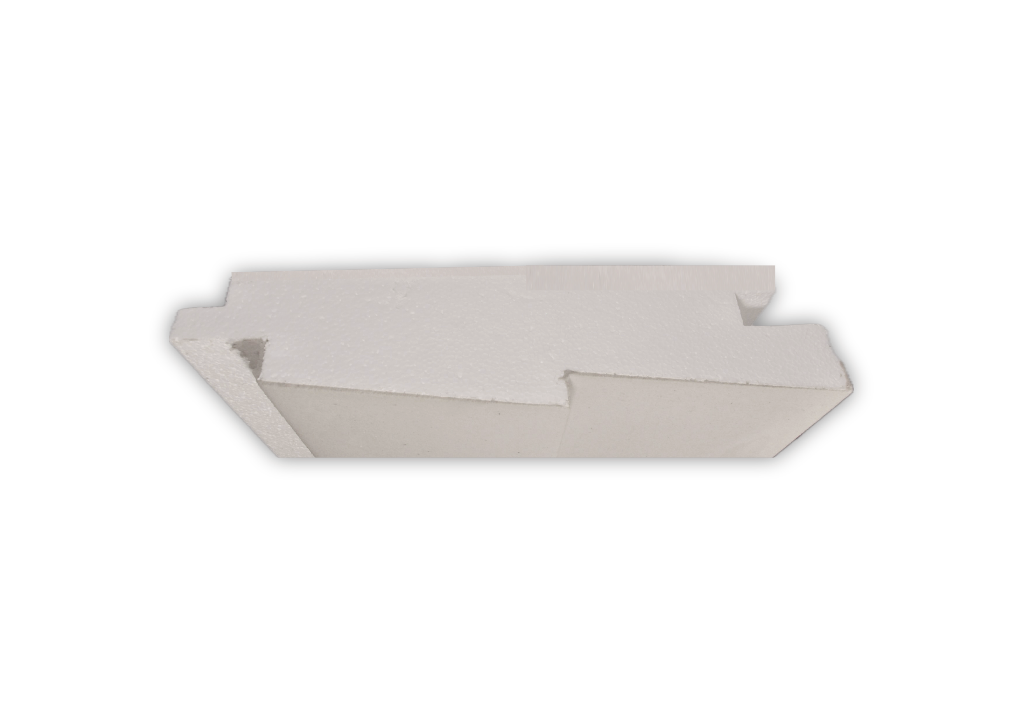 Termoizolație de fațade prefabricate din polistiren cu densitate de min. EPS 80 cu îmbinare nut și feder, diverse grosimi în funcție de proiectul clientului. Pe suprafața polistirenului se aplică un strat de protecție din compoziții chimice (aplicat din fabrică cu un strat compozit, care nu necesită ulterior aplicarea unui strat de armare cu fibră de sticlă).